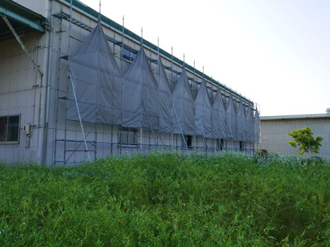 今日は、豊橋市東細谷町のお客様(O様)の貸し倉庫の雨漏り修理のための足場組みを行いました。 隣地の畑をお借りして足場を組むため工事の廃材 等落下しても片付けが楽にできるように先行してブルーシートを敷いてあります &nbs ・・・ 詳細