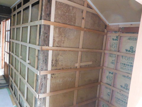 今日は、湖西市新所のM寺様の物置増設工事で内装壁造作工事を行いました。 古材の歪を修正しながら内装壁の取付を行っています。 明日、建具(新設4枚)の取付をする予定でしたが、内装ボード張りで追加工事が発生したため木曜日に予 ・・・ 詳細