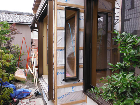 今日は、湖西市新所のお客様(K様)の廊下の増築工事で屋根下地、床工事、外壁下地 等工事を行いました。 今まで使用されていたシャッター付きサッシを移設。(一昨日工事) 屋根下地は化粧垂木 化粧野地で仕上げ、廊下増築部分の屋 ・・・ 詳細