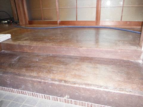 今日は、湖西市岡崎のお客様(M様)の玄関ホール、廊下のフロア張り替えを行いました。 (以前雨漏りのための外壁張り替え、サッシ取替、外壁塗装、屋根瓦しっくい塗り替え 工事等させていただきました) 廊下の一部が フワフワ し ・・・ 詳細