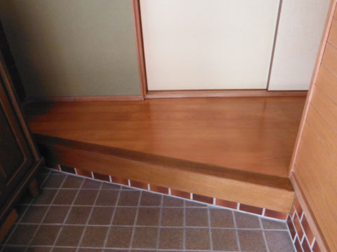 今日は、湖西市新所原のお客様(B様)の玄関ホール、廊下のフロア張り替えを行いました。 玄関式台、上がり框もフロアと同色で仕上げました。 (ピンクテープは養生テープ固定) 東洋テックス AA1 ナチュラルチェリー色 &nb ・・・ 詳細