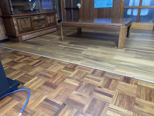 床の経年劣化で床の沈み込みが数カ所あることで、床の重ね張りで対応させていただきました。
