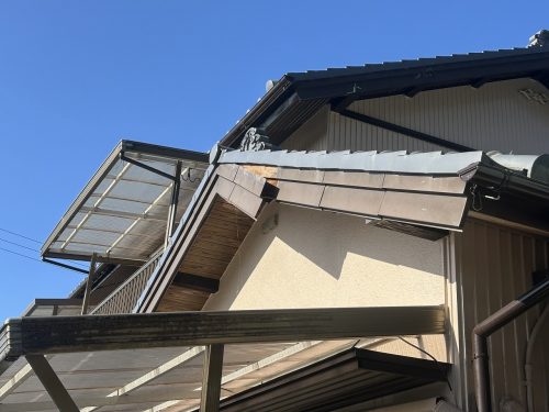 また湖西市利木のお客様(M様)の強風による破風板の銅板がめくれてしまい、修理のご依頼で明日作業させていただきます
