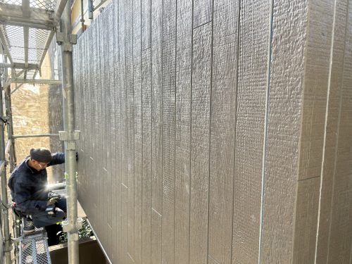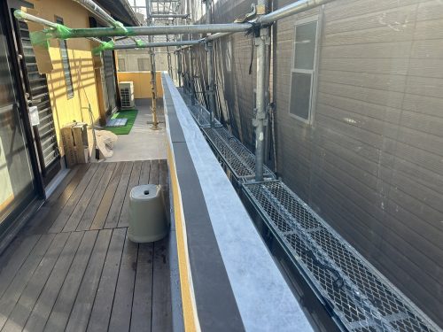 今日は、湖西市新所原のお客様(K様)のベランダ雨漏り修理、外壁塗装工事でベランダ外壁サイディング張り工事を行いました。