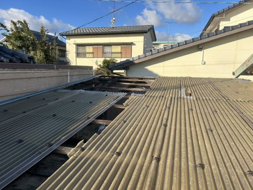 今日は、湖西市新居町のお客様(H様)の木製テラス屋根の貼り替えを行いました。