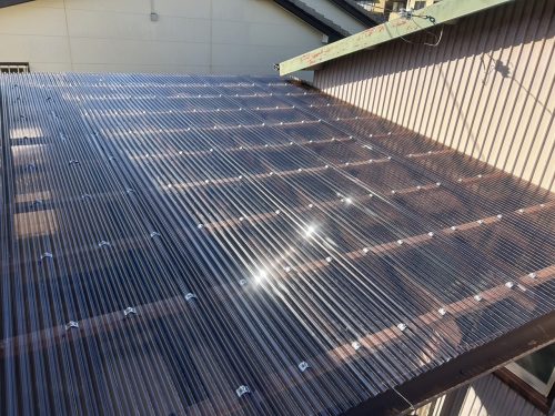ポリカ波板の劣化がひどく強風で飛散してしまいました。