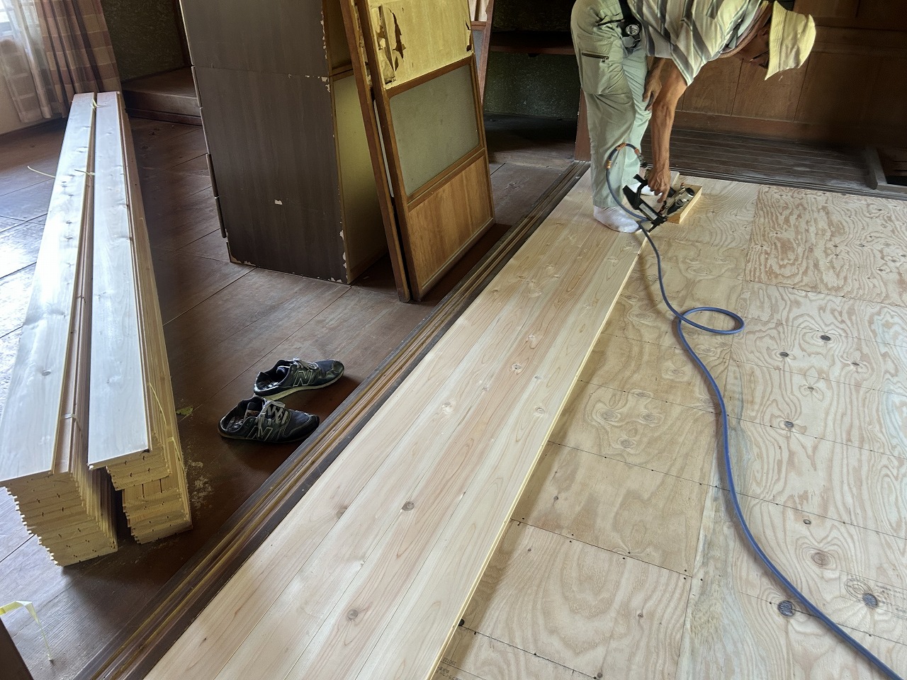 一昨日より新城市のお客様(V様)の和室畳→無垢フローリング工事に着工しました。 築年数が経った住宅で、多少の床の歪があるため床下地の状態で歪の修正を行いました。 床下地合板張り 今回、無垢フローリング(桧)で仕上げます。 ・・・ 詳細